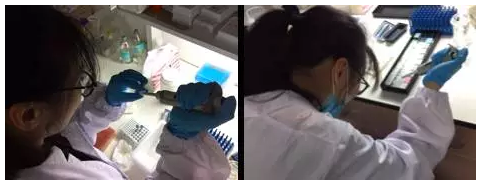 (左) CST技術(shù)人員與馬同學(xué)共同討論實(shí)驗(yàn)。(右)本次實(shí)驗(yàn)使用的修復(fù)缸